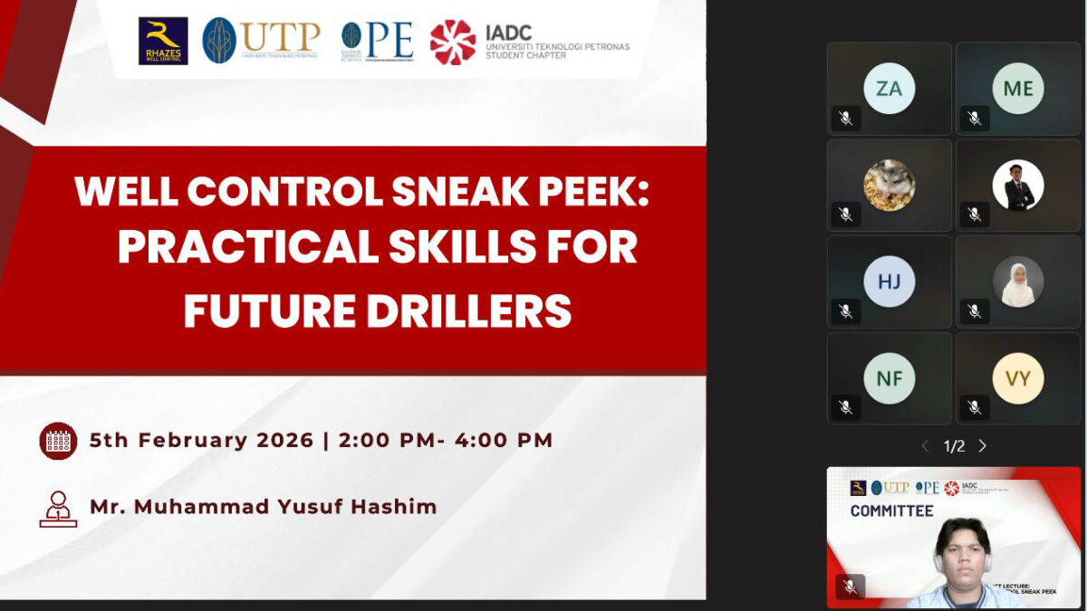 The IADC Universiti Teknologi PETRONAS (UTP) Student Chapter recently hosted an adjunct lecture titled “Well Control Sneak Peek: Practical Skills for Future Drillers,” offering participants a valuable introduction to one of the most critical aspects of drilling operations. Yusuf Hashim, Well Control Instructor and Managing Director at Rhazes Well Control, conducted the lecture, offering his expertise and industry insights.